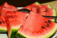 Water Melon:The clue's in the name! But as well as being high in water (91.5%), this type of melon is over flowing with the antioxidant lycopene, which has been proven to help fight cancer!